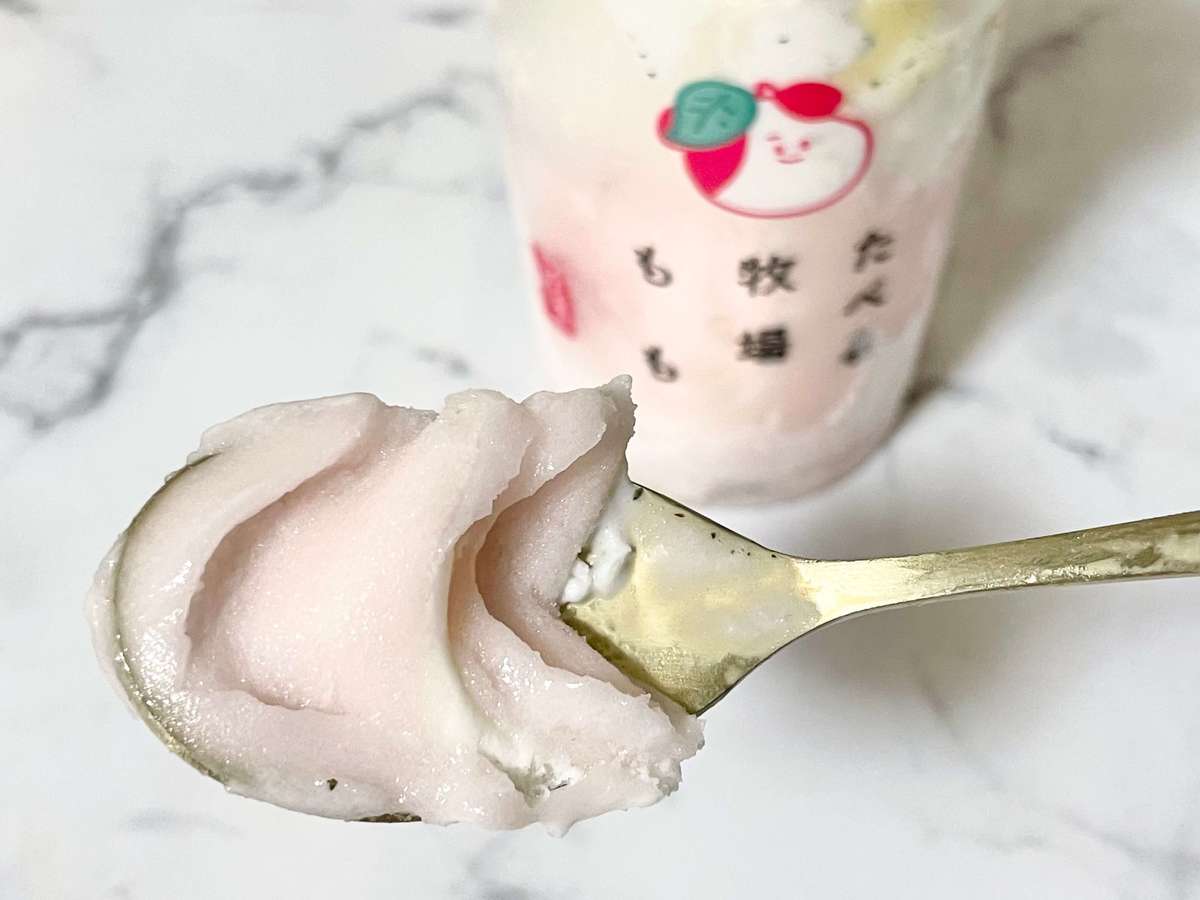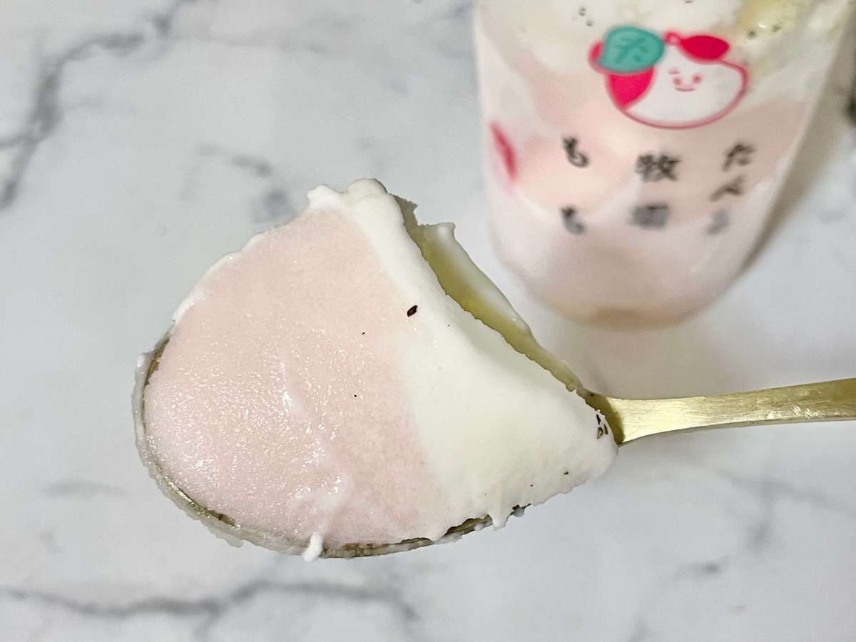 溶けると中から出てくる細かな白桃の果肉がアクセントになっています。