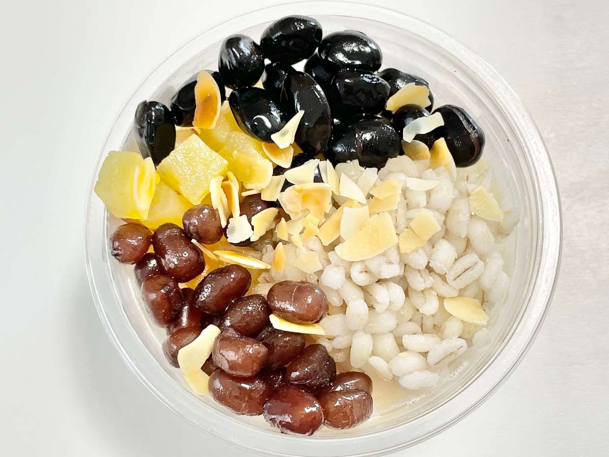 煮豆や甘納豆、サツマイモは甘味があり、豆花と合わさると上品な甘さです。