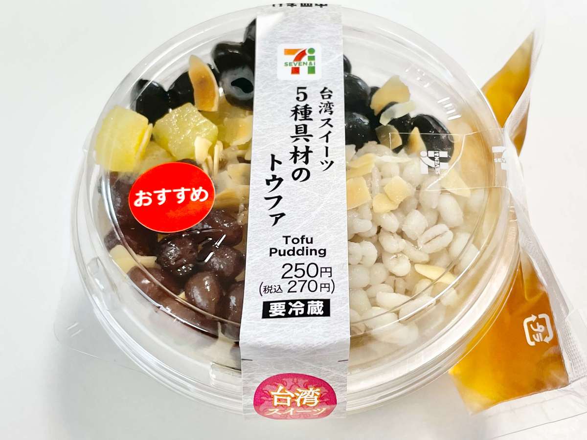 セブンイレブンで購入できる「台湾スイーツ 5種具材のトウファ」をご紹介しました。