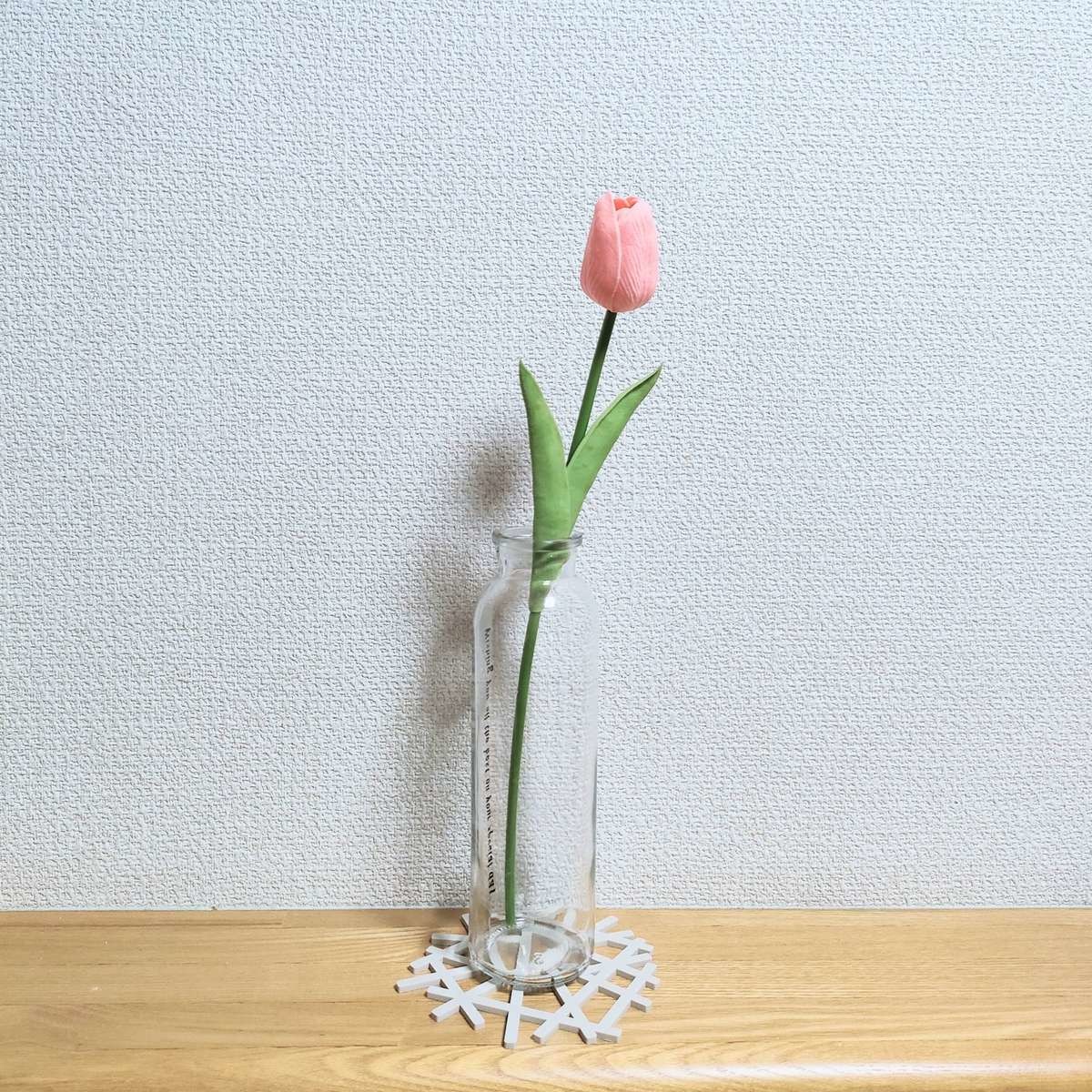 一輪飾るだけでもお部屋がパッと華やかになるパワーがありますね♪チューリップの存在感ってすごい!