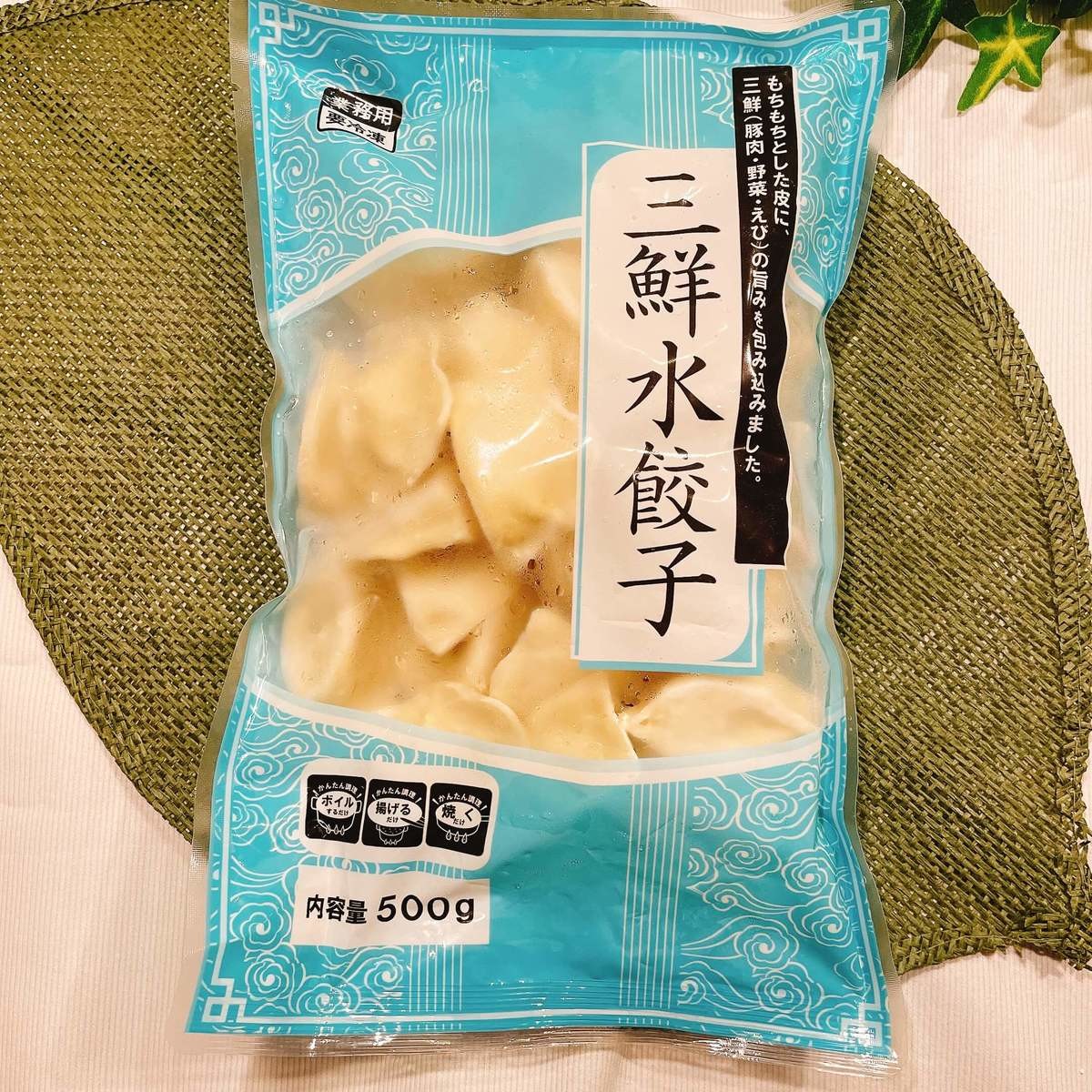 こちらは凍ったままの水餃子を沸騰したお湯に5分ほど入れるだけで完成です。