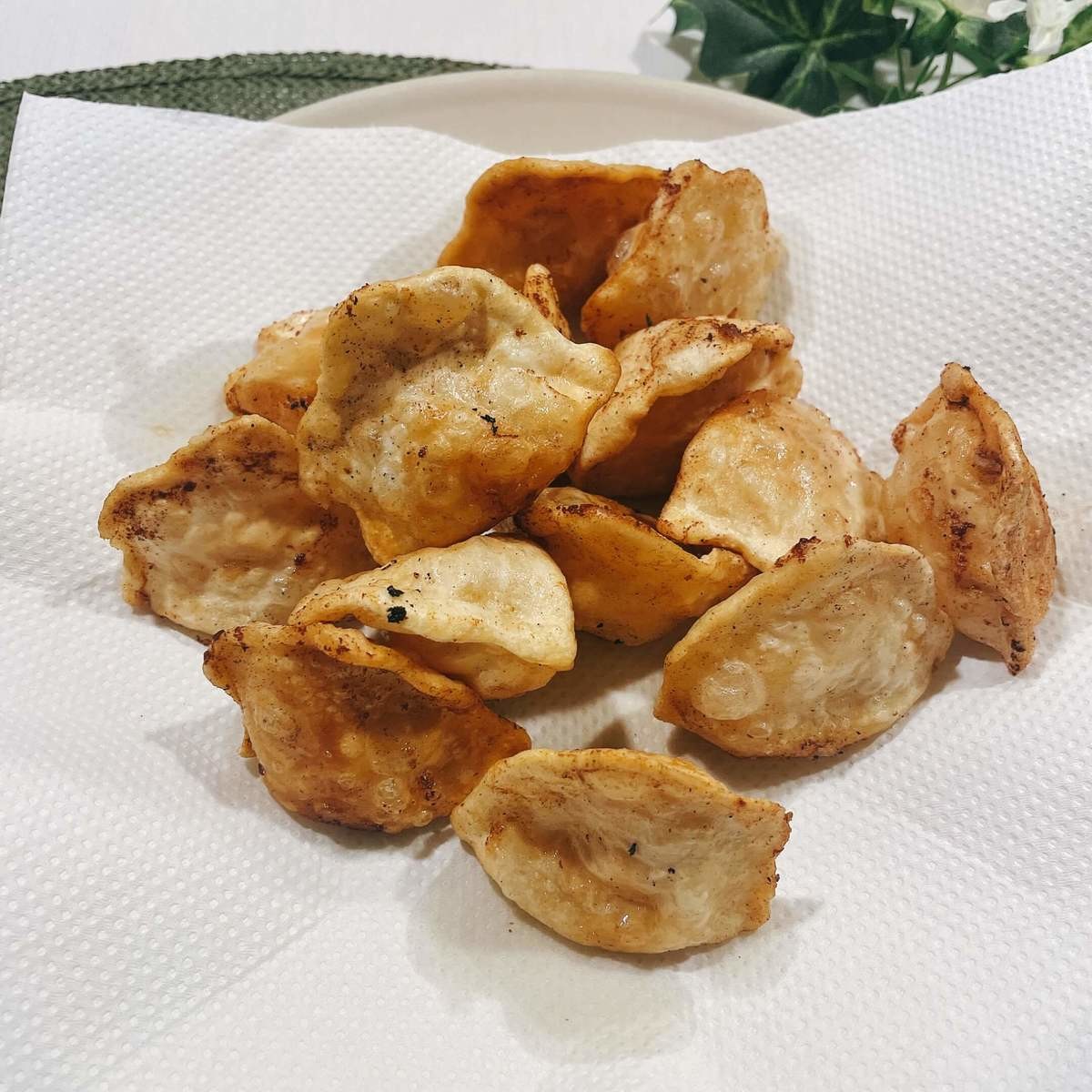 揚げることで皮がぱりぱりになってとても良い食感になります。