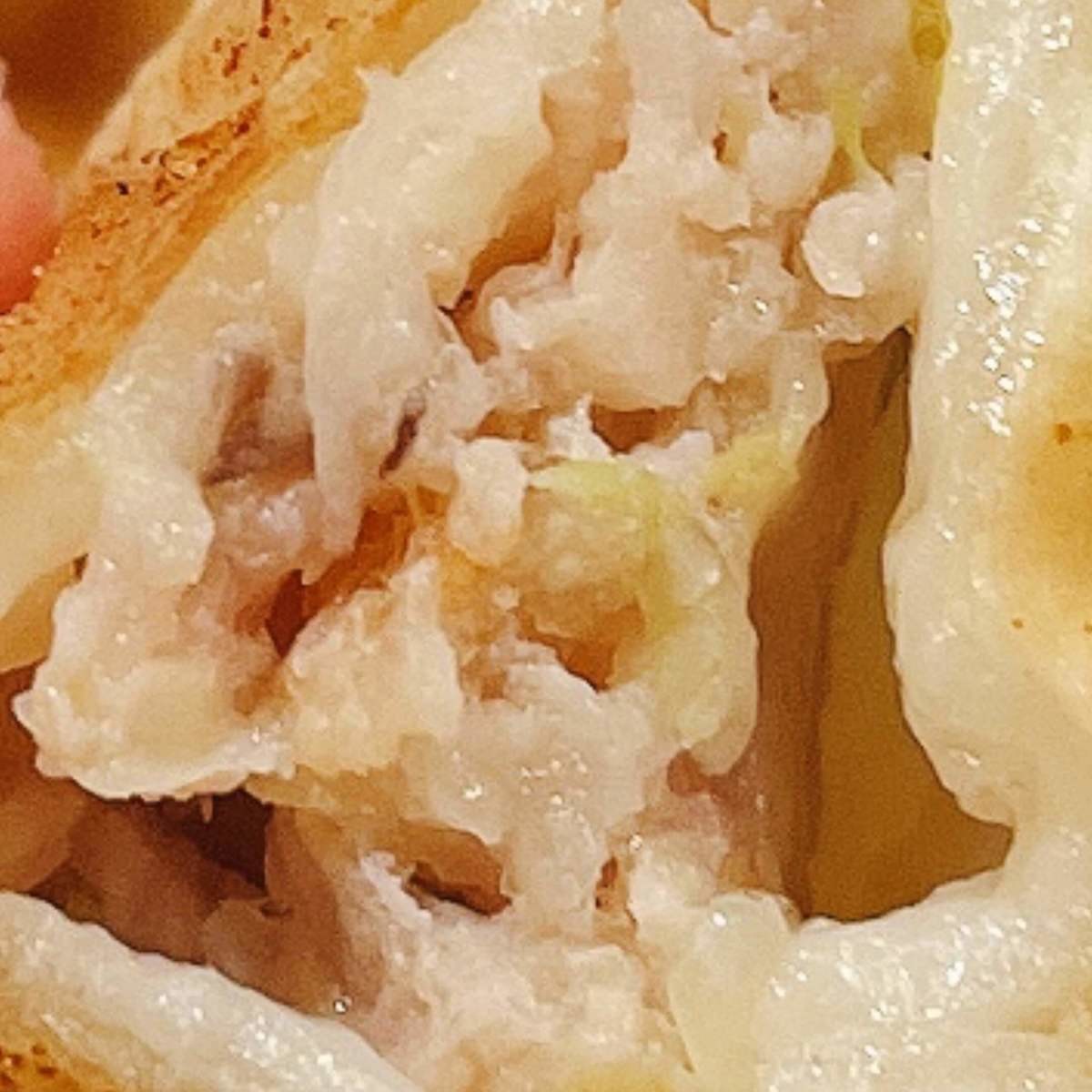 水餃子と大差はありませんが、揚げ餃子の方がえびがよく見えますね。