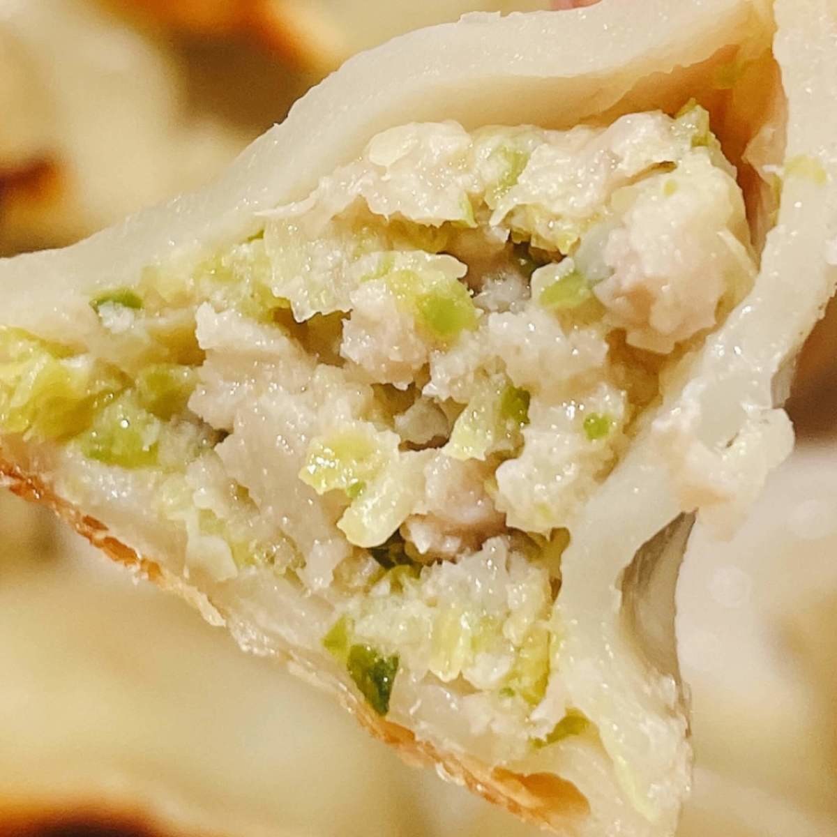 豚肉水餃子の方が具材がぎっしりと詰まっています。