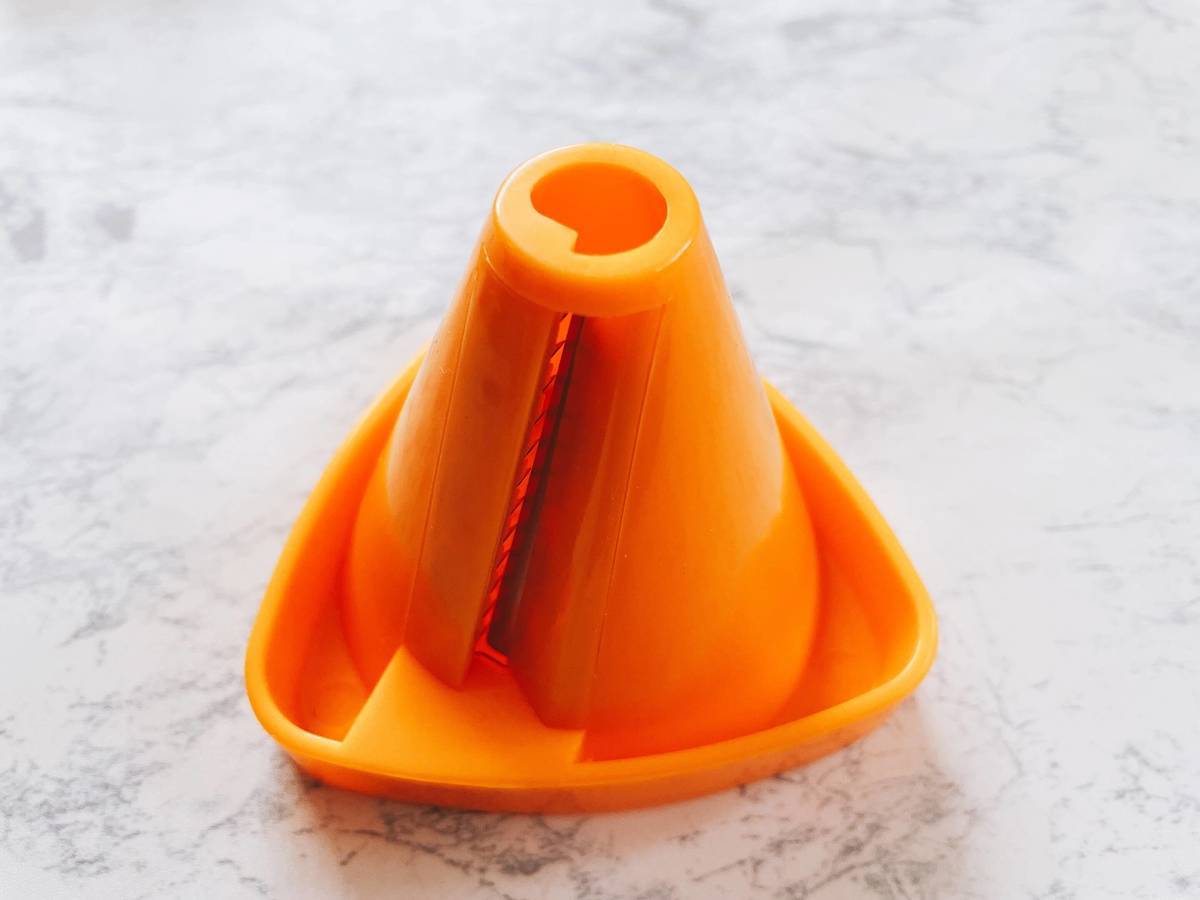 こちらのアイテム、お野菜をピーラーの中で回すと、麺のように細長くカット出来てしまう商品なんです。