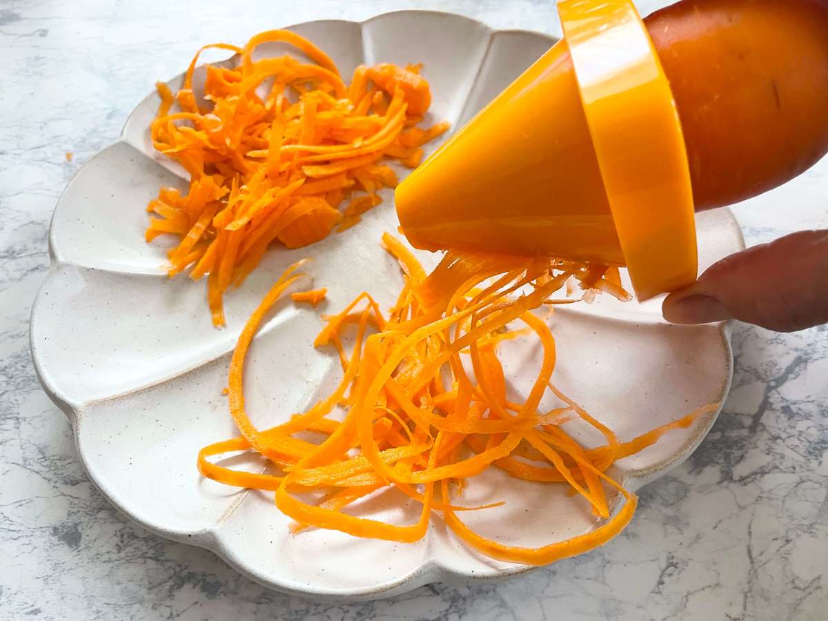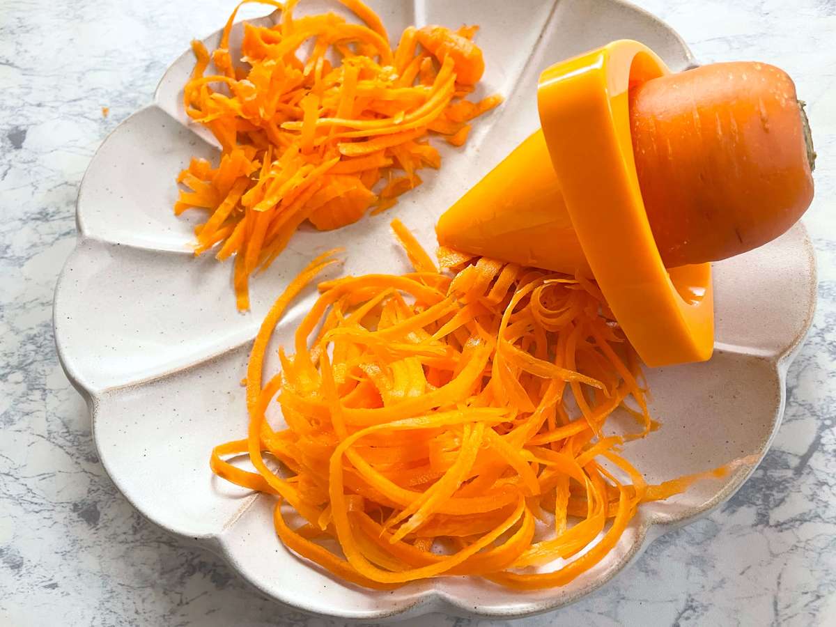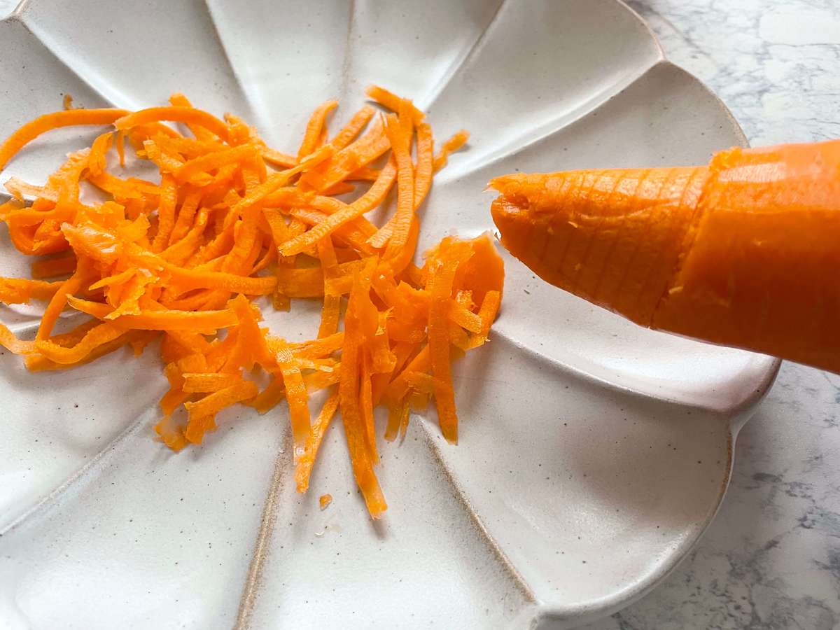 にんじんは途中で切れて想像していた麺のような長さには程遠い感じになってしまいました。