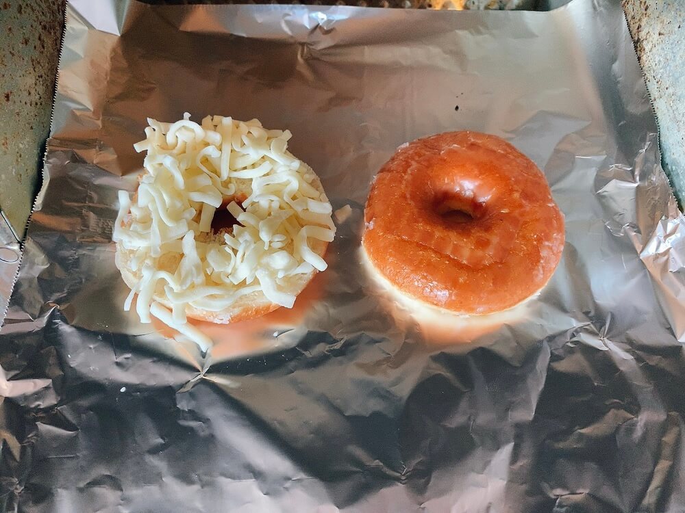 ソレダメのミスドアレンジ②ピザ用チーズをのせてトースターで焼く