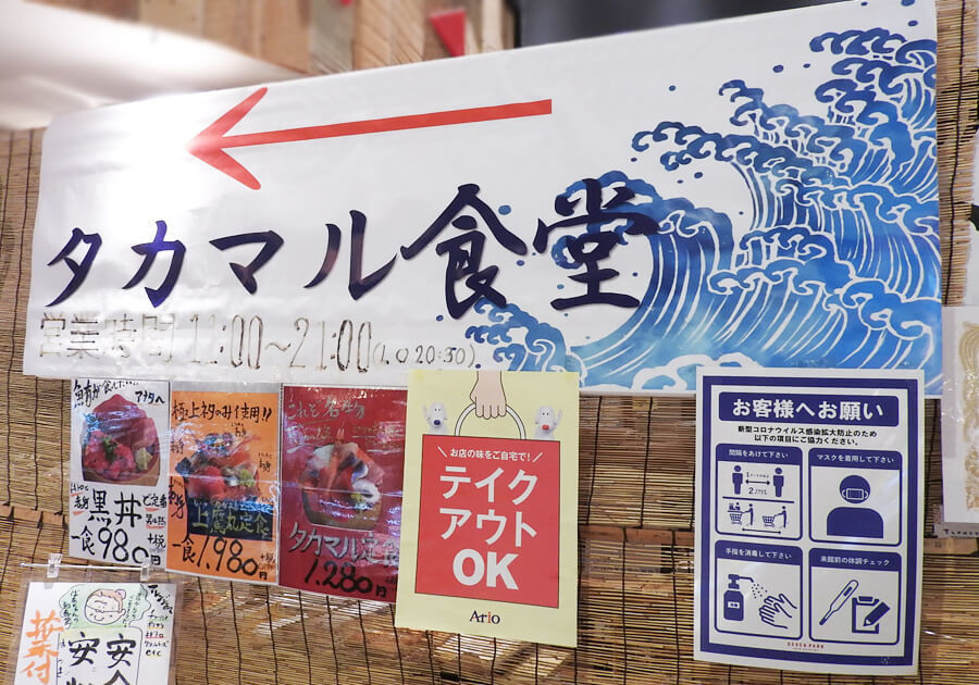 ちなみに、タカマル鮮魚店セブンパークアリオ柏では、タカマル食堂も併設されていてイートインはもちろんのこと、メニューのテイクアウトもOKです。