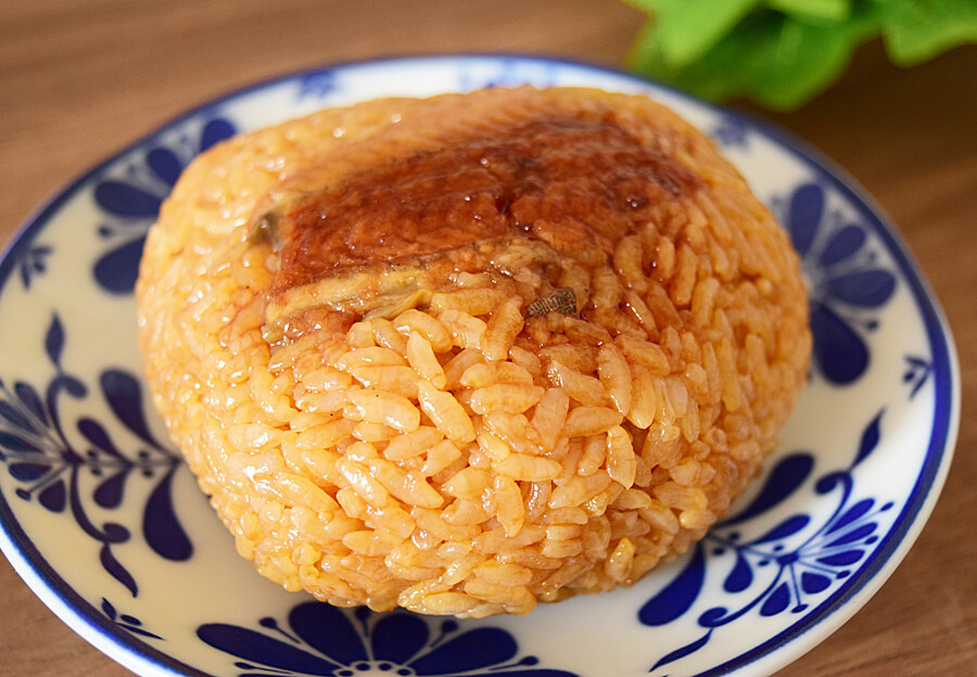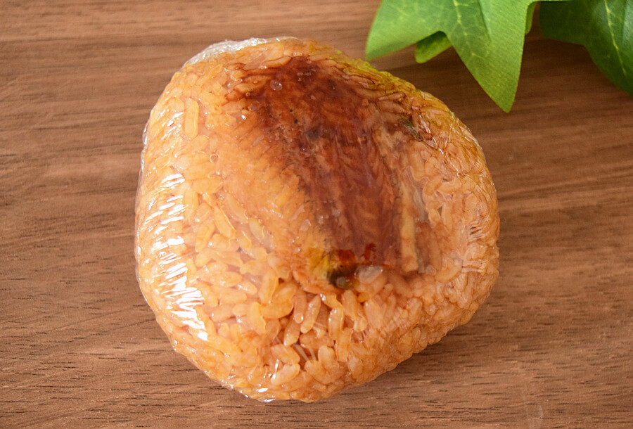 「うなぎのおにぎり」の表面には、薄いうなぎがちょこんと乗っかっています。ごはんは甘たれで味つけ。