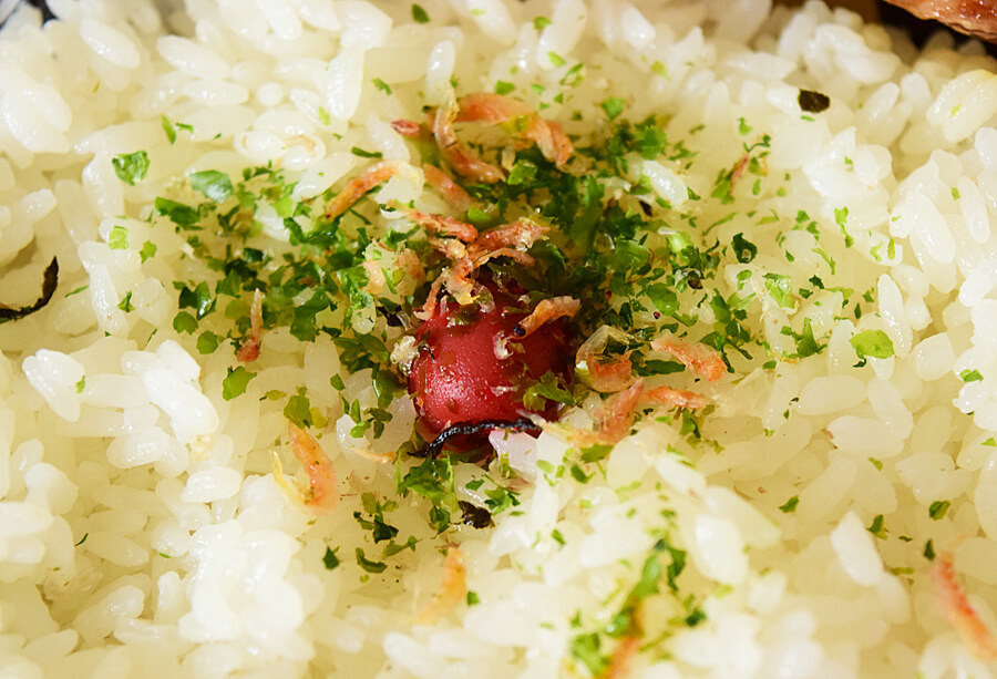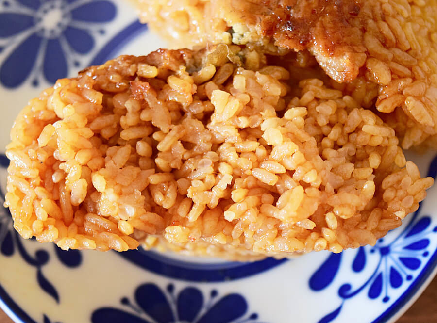ごはんはぎゅうぎゅうに握られているように見えるのにもかかわらず、つぶれてませんし、だからといってパサパサしていない。