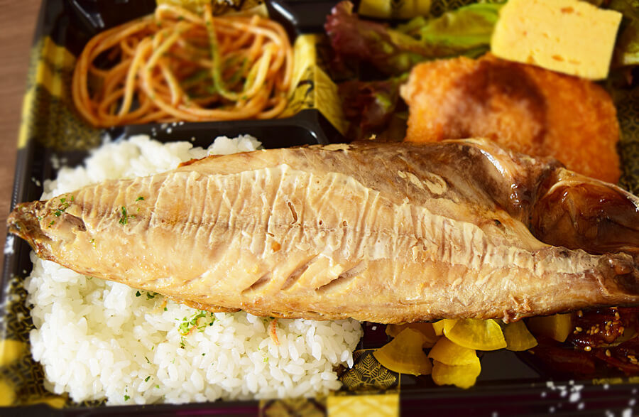 ボリューム満点の焼き魚が印象的なお弁当。ほぼ1000円以下で買えちゃいます。近くにお立ち寄りの際は、ぜひともチェックを。