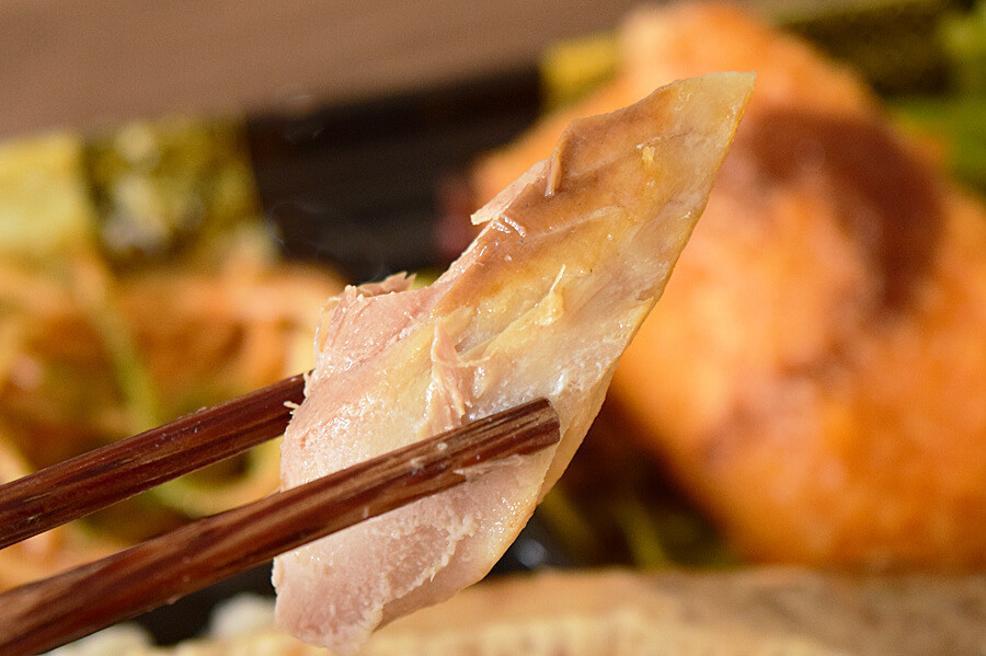 適度に脂がのっていて、とってもおいしい鮭ハラス。鮭ハラスの切身だけで、箸が止まりません。あまり魚が好きではない、3歳の娘もシェアした分は完食していました。