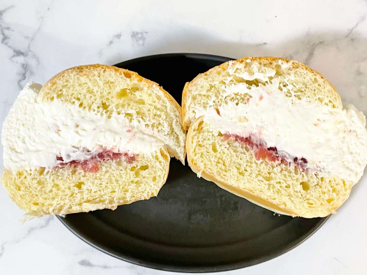 半分にカットしてみると、奥までしっかりとクリームが詰まっていることが分かります。