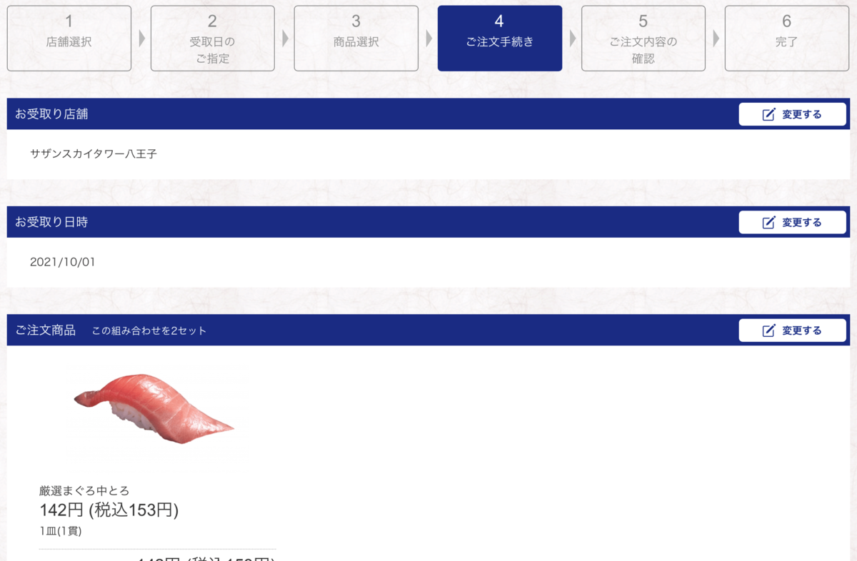 最後にもう一度、注文した商品と金額、受け取り日、受け取り時間を確認します。 注文内容に間違いがなければ、これで注文は終了です。