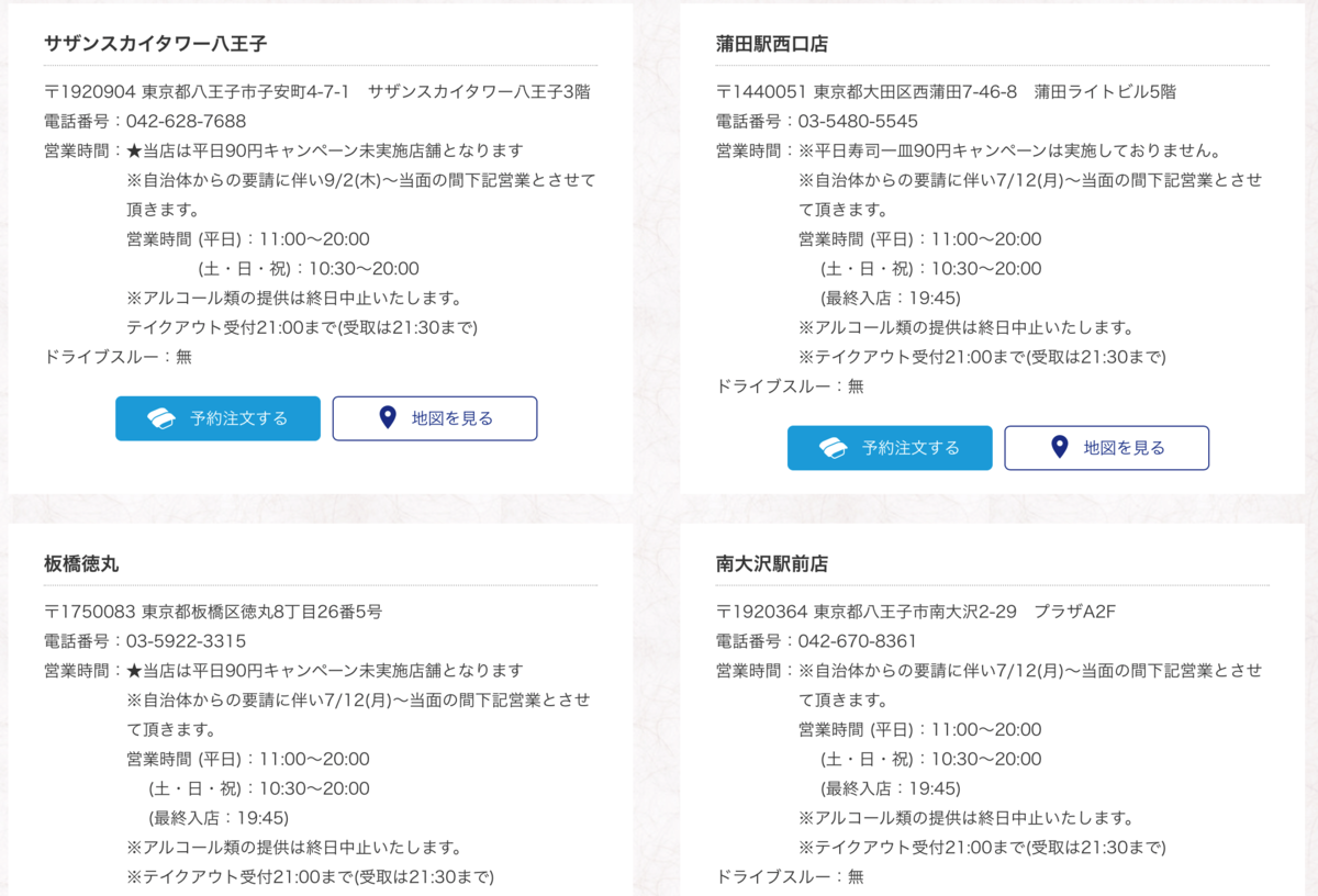 検索すると、こちらのように該当の店舗が見つかります。営業時間や住所なども確認できますよ。