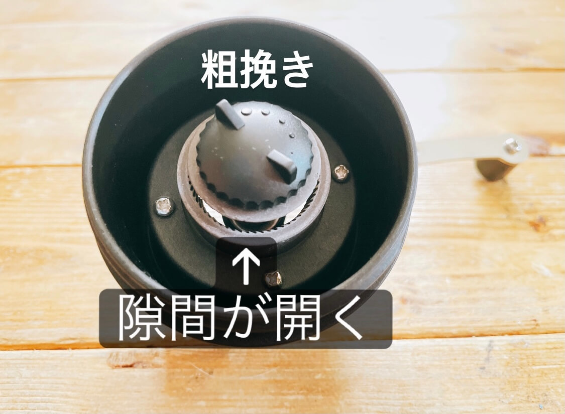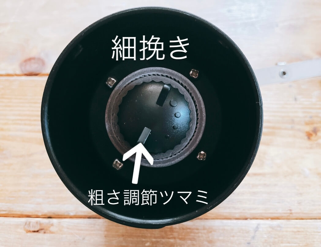 ミルを裏返して粗さ調節ツマミを時計回りに回して調節しますが、回しすぎると故障の原因にもなるので加減を見ながら作業してくださいね。