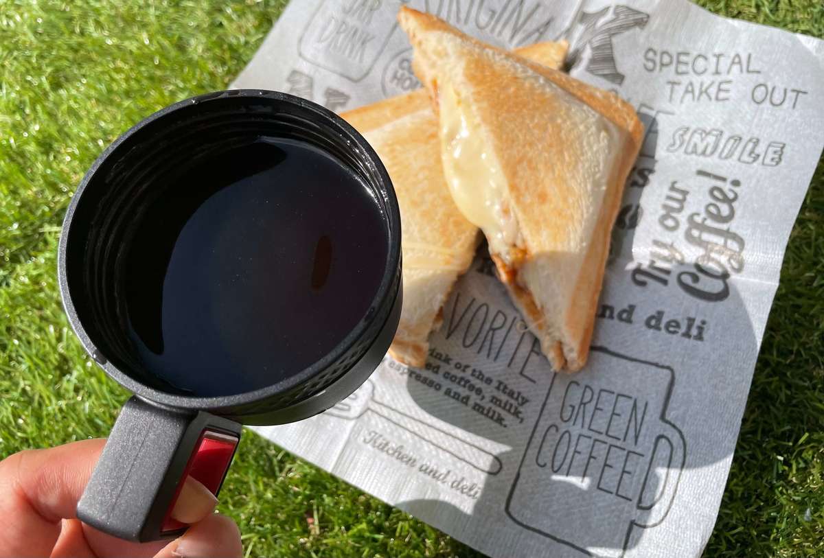 忙しい朝、子供達が登校した後30分だけ時間があったので、ウッドデッキでコーヒーとホットサンドを堪能してみました。