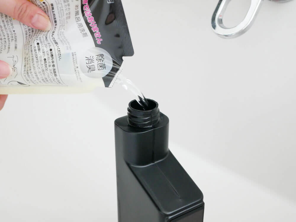 ご使用になりたい洗剤の容量を確認の上、詰め替えてご使用下さい。