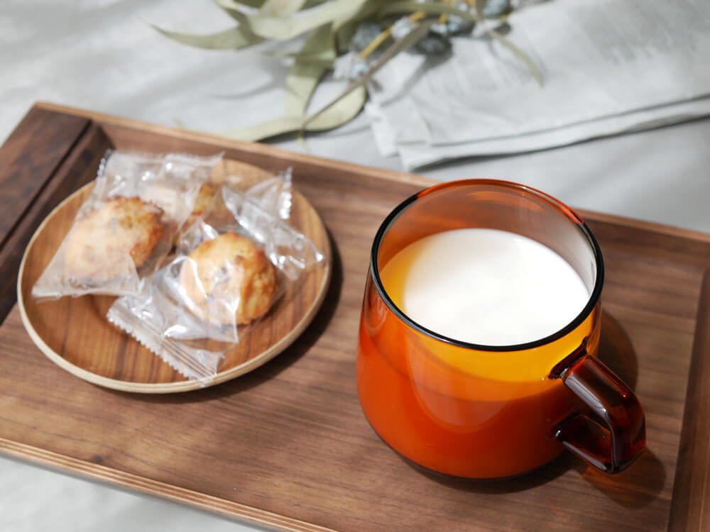 カップ・マグの素材は、電子レンジ、食器洗浄・乾燥機が使える耐熱ガラス製。電子レンジで温め直しができるのが日常使いに嬉しいポイントですね。