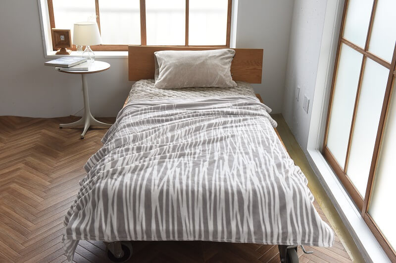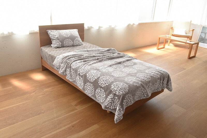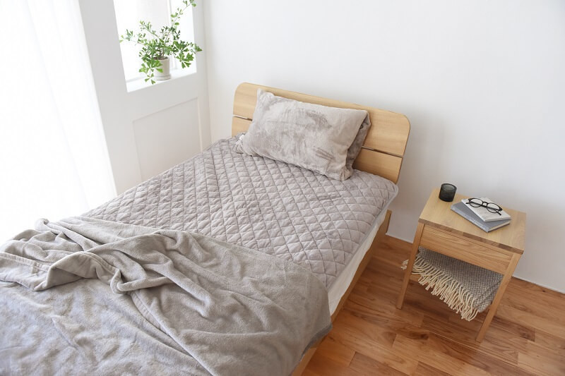 毛布や敷きパッドと同じカラー展開なので、お揃いにして統一感のある寝室コーディネートに。
