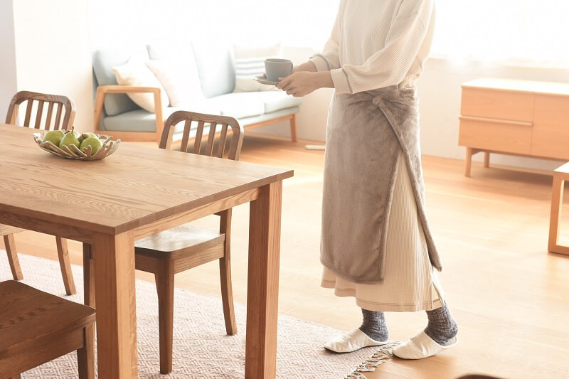 デスクワーク中はひざ掛けとして(1WAY)、読書タイムはポンチョに(2WAY)、そして家事をするあいだは巻きスカートにして(3WAY)。