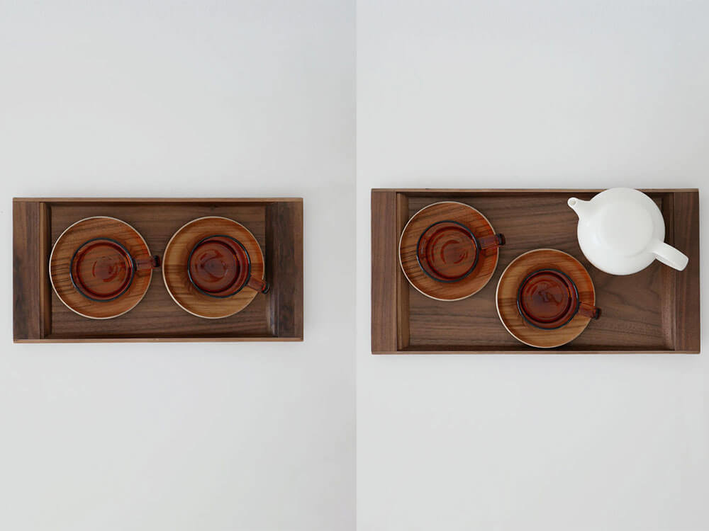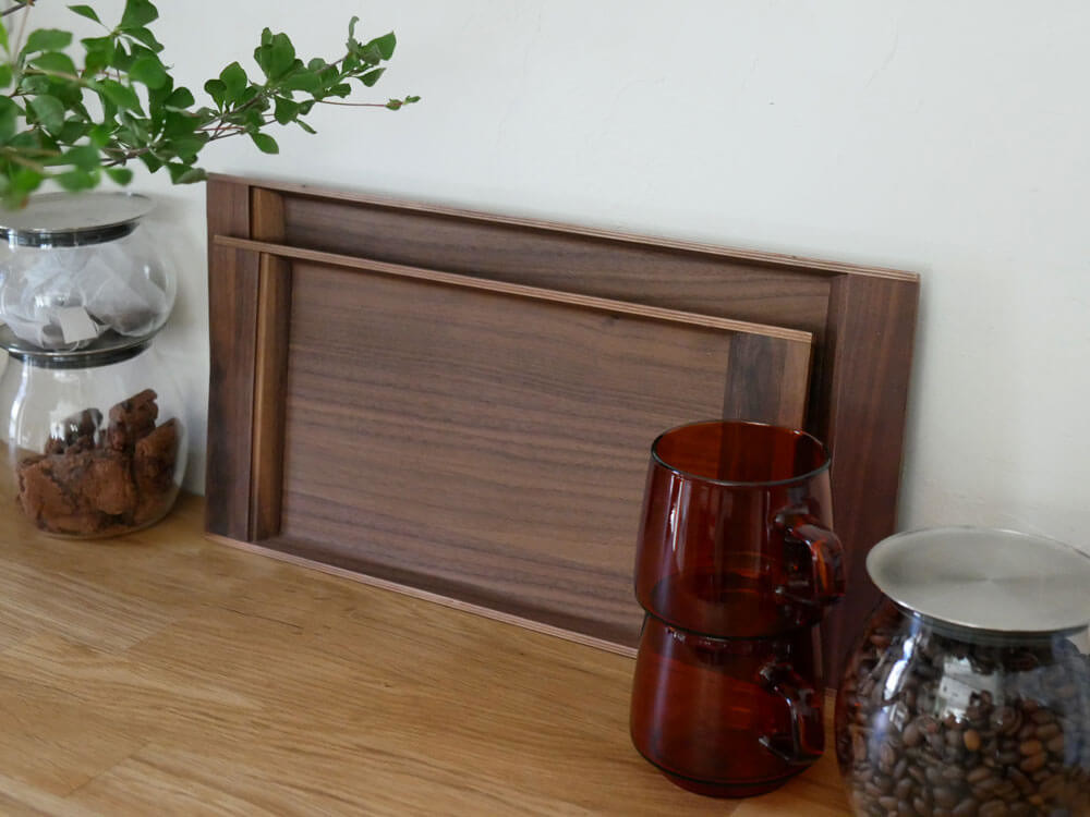 運びやすさ、並べやすさ重視派におすすめの長方形の「トレイ」は、見栄え良く食器を配置でき、無駄なスペースも生まれず、収納時も立てられ、実用性抜群!