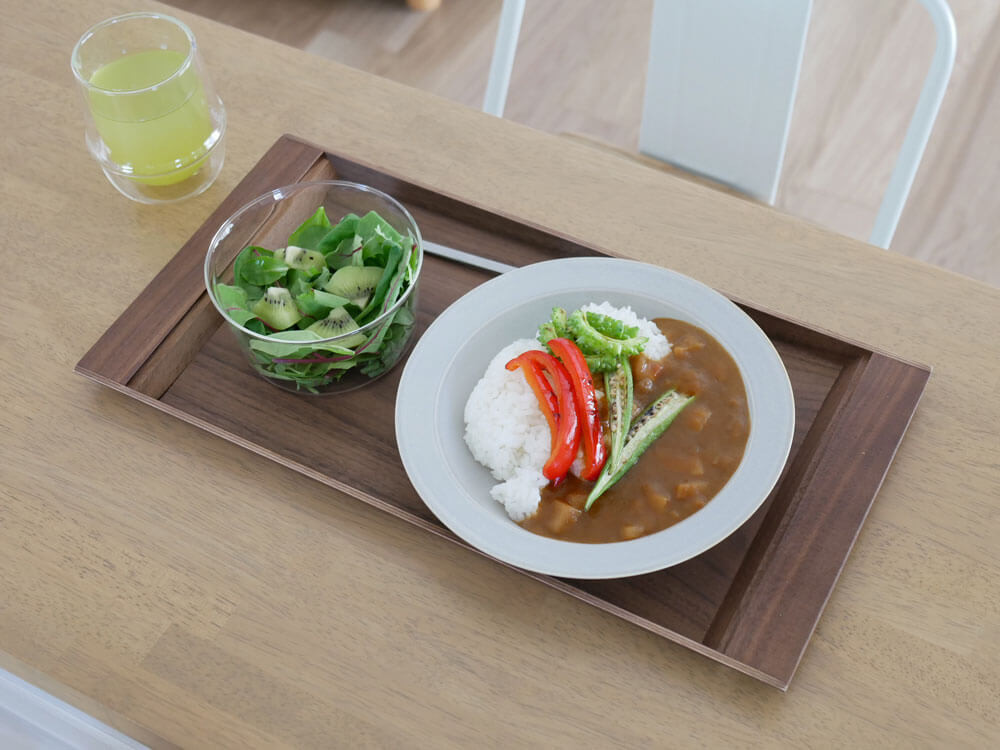 和食にも洋食にもしっくり馴染む天然木の「トレイ」は、ランチョンマット代わりに一人用の朝食やランチをセッティングしてもGOOD!