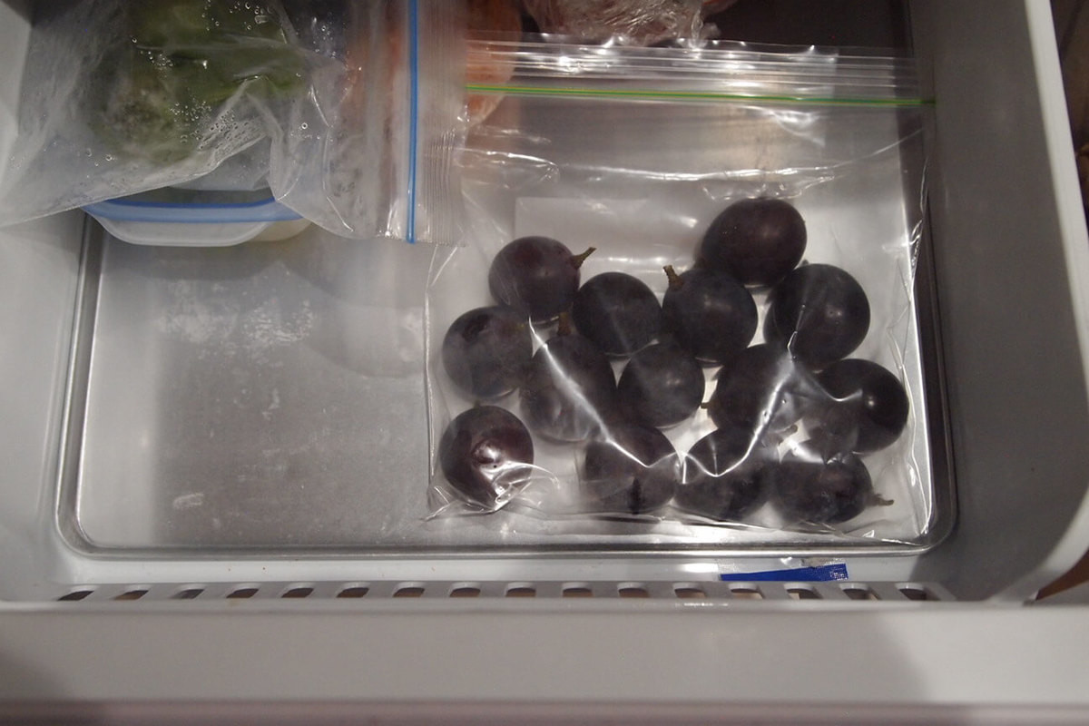 水気を拭き取ったぶどうは密閉式の保存袋に入れて、そのまま冷凍室へ入れます。