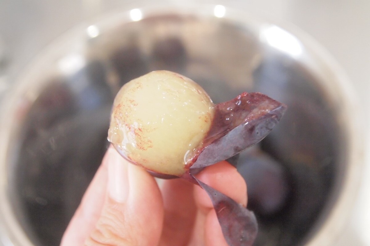 ぶどうシャーベットの作り方④半解凍し、皮を剥いたら完成