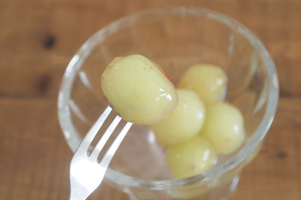 皮を剥いたぶどうをいざ実食!