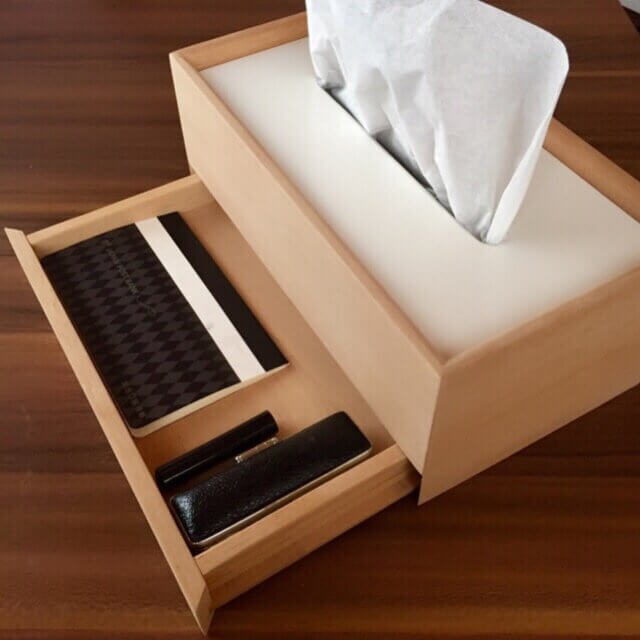 毎日使うものだから、きちんとしたものを使いたい方にぴったりの「引出し付きティッシュケース」です。