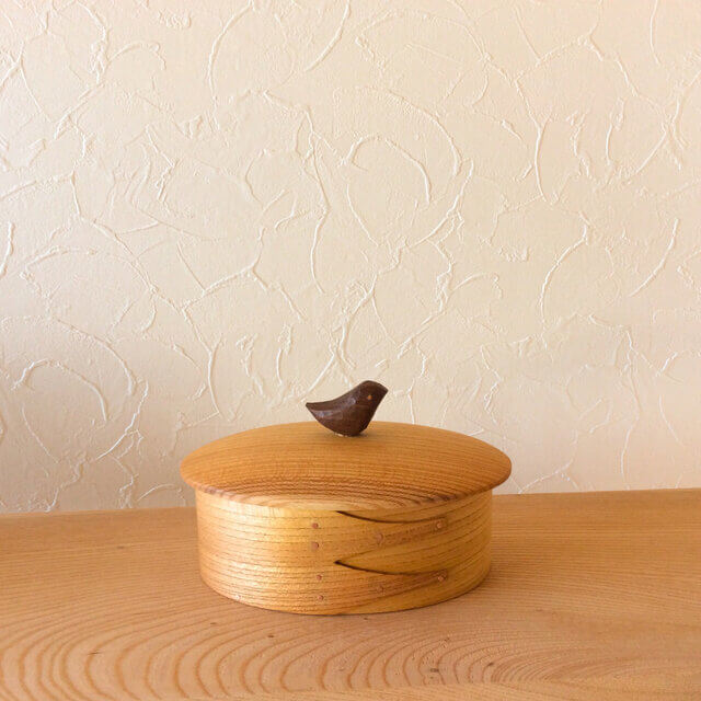 蓋の中央には鳥さんがちょこんと乗っているのがとってもキュート!中身墓ジェット系から小物系まで、入れるものを考えるのが楽しくなりそうですね!