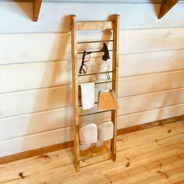 はしごみたいでとっても可愛いのに、見せる収納が叶ってお部屋がすっきり!玄関に置いて、スリッパラックとして使うのもいいですね。立て掛けて使えるので、省スペースでモノをすっきりさせたい!という方にぴったりですね。