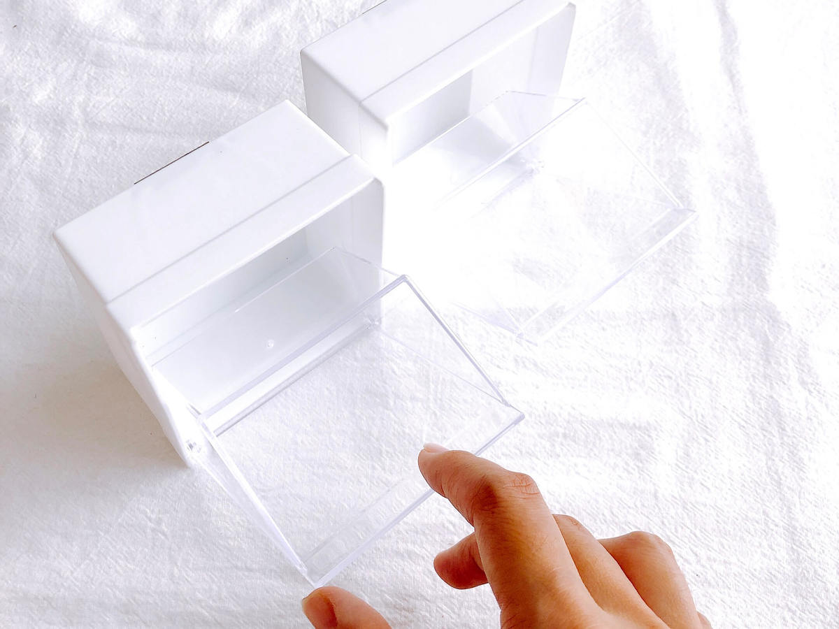 「パカッ」とスイング式で開け閉めができる、小さめサイズの収納ケース。