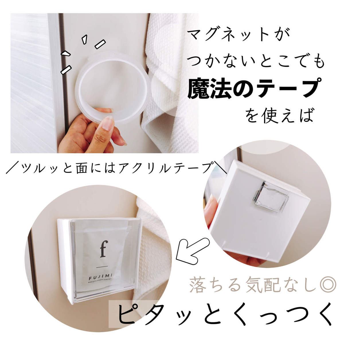 マグネットがつかないところでも使いたい場合は、「魔法のテープ」こと貼ってはがせる両面テープなどを使えば、ピタッとくっつけることができます!