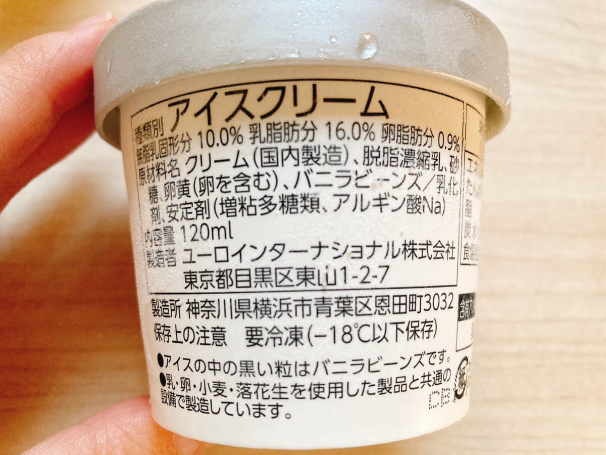 バニラの成分表示を見てみると、種類別は「アイスクリーム」の記載がありました。