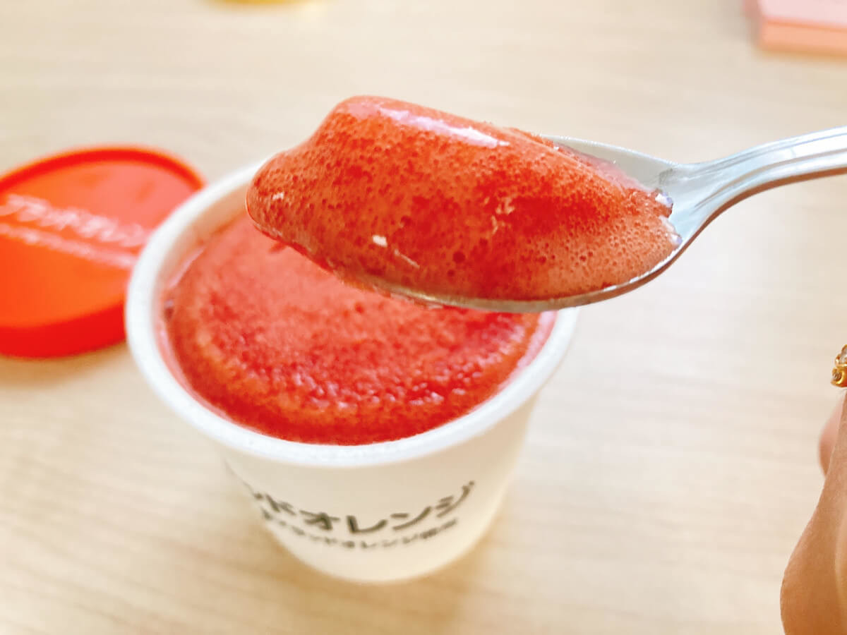 ブラッドオレンジをそのまま凍らせて、シャーベットにしたような感じ。