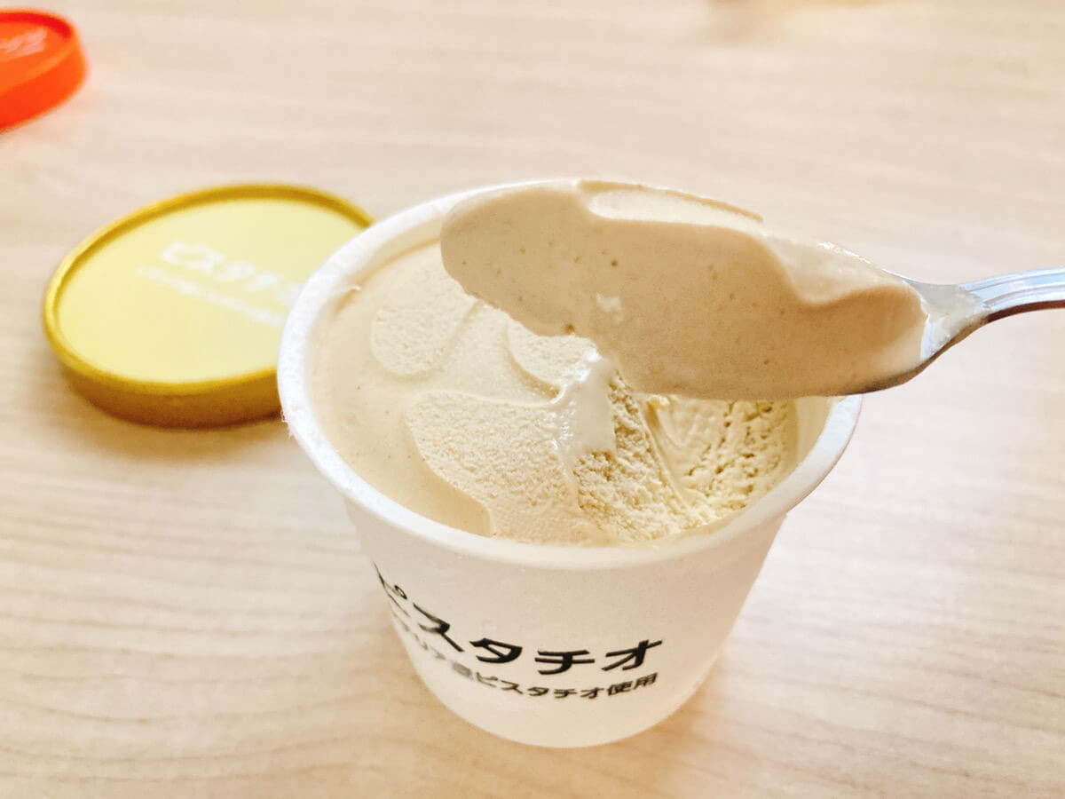 みどりっぽいピスタチオアイスも多いですが、こちらはTHEピスタチオ!って感じはしないです。