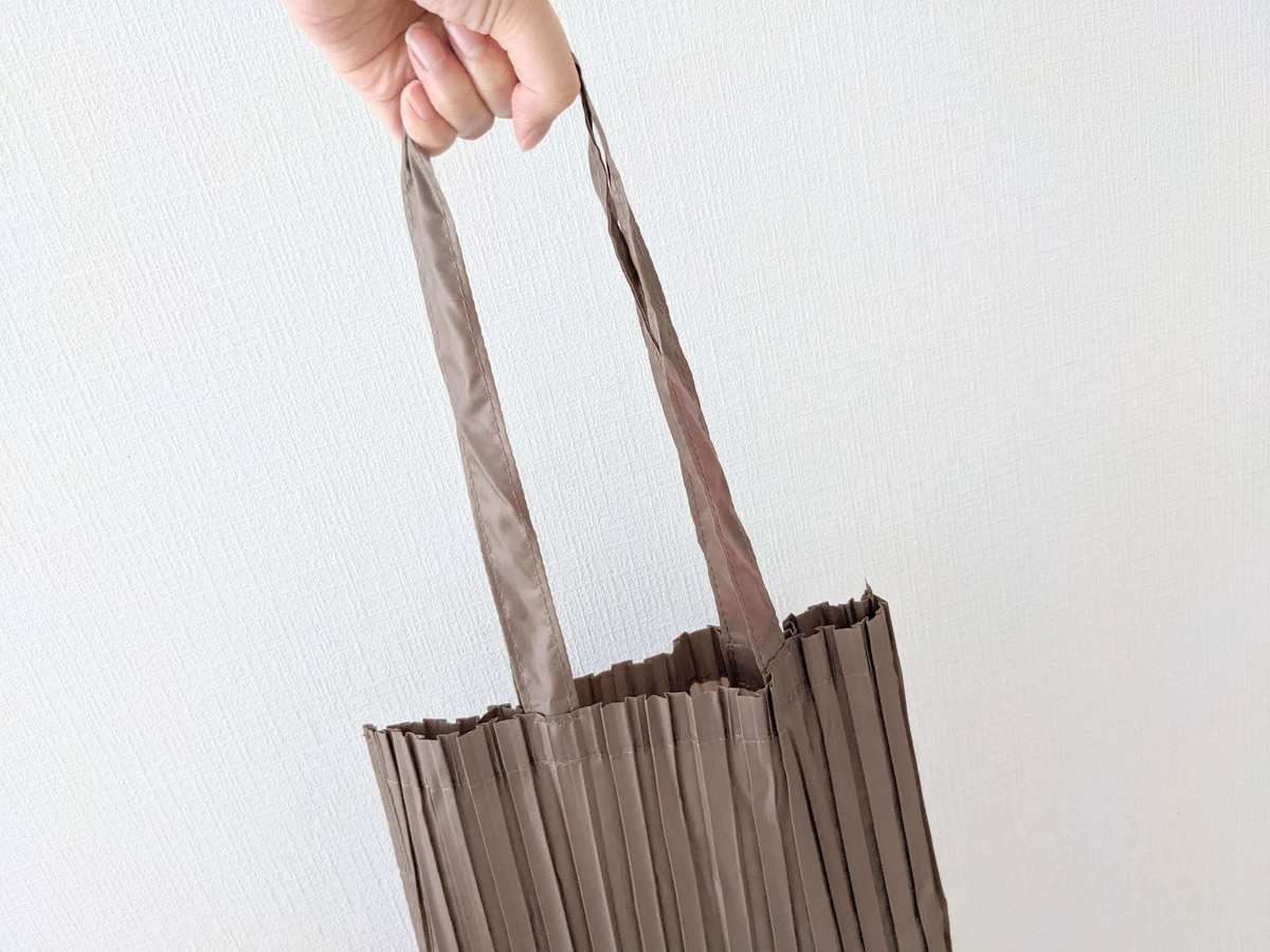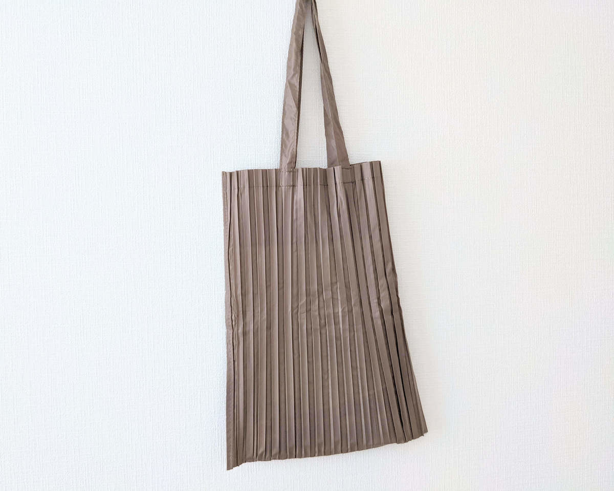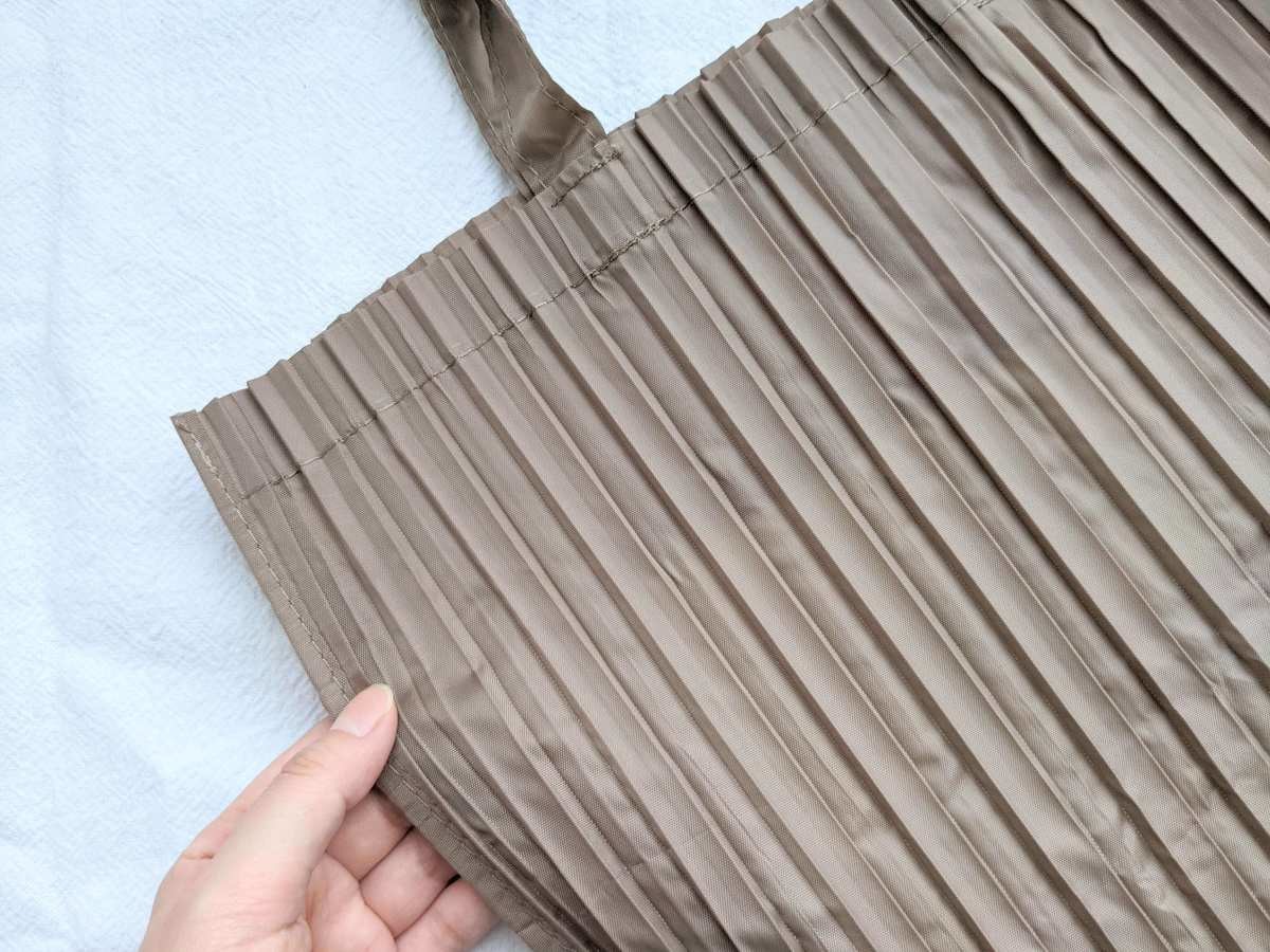 こちらが上品さが漂う大人仕様のプリーツエコバッグです。 どんな服装にも合わせやすく、あらゆるシーンで大活躍してくれること間違いなし♪