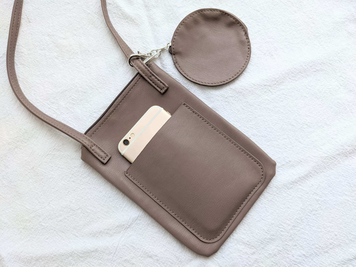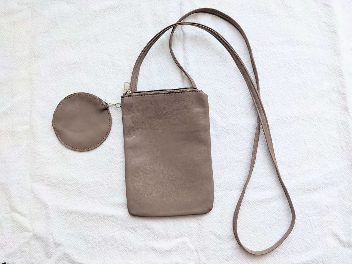 サイズは、約横13cm×縦18cm。 スマホや財布など、お出かけに必要な最低限のものはきちんと入ります。