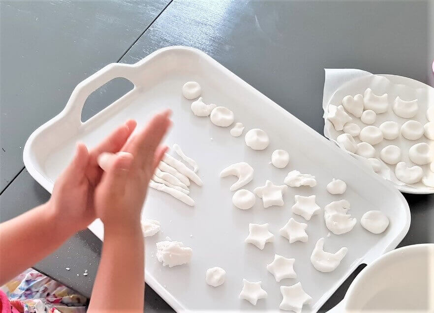 好きな形に成形しましょう。粘土をするような感じで子どもも一緒に取り組めます。