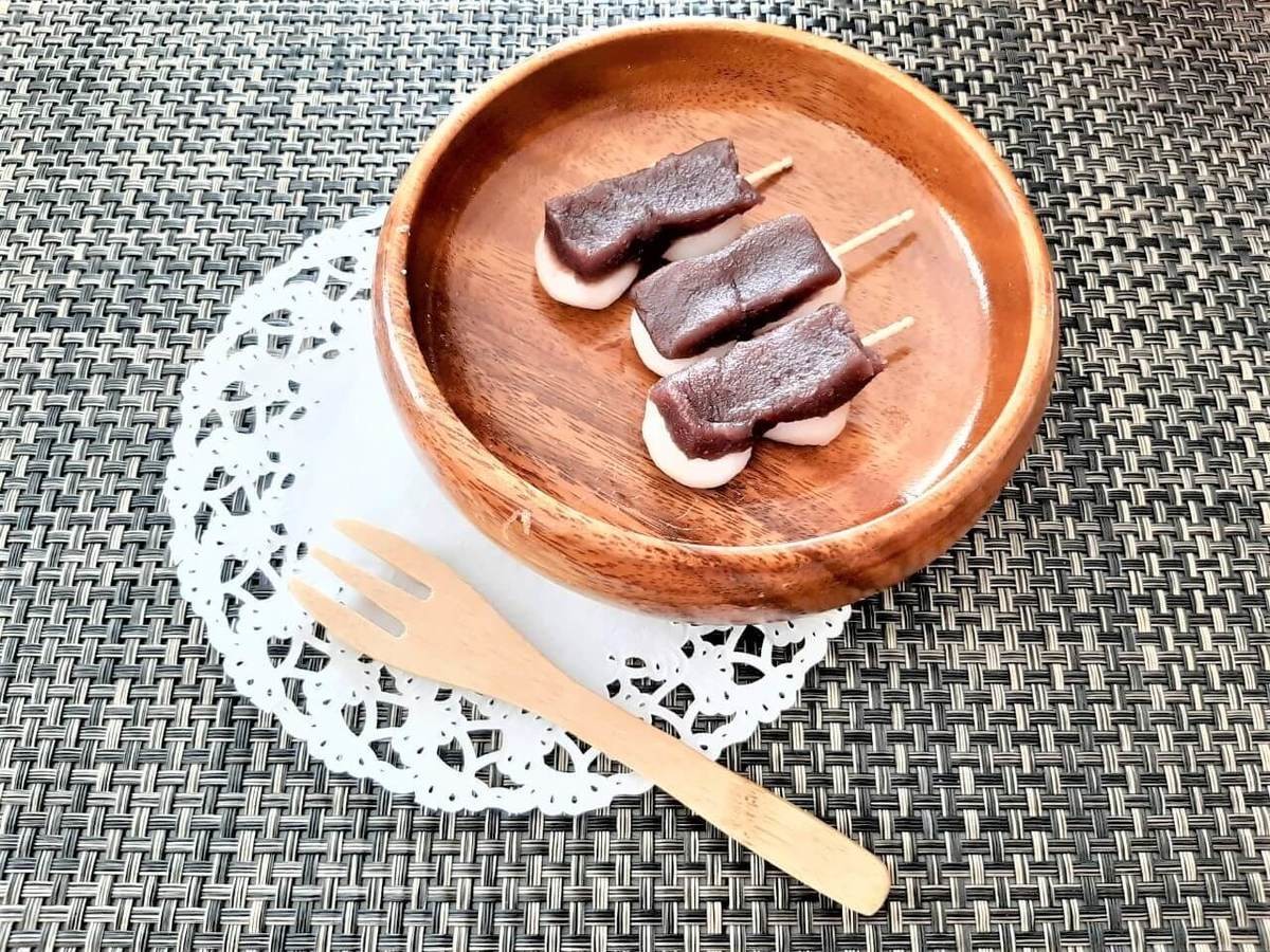 丸いおだんごにつまようじを刺して、上にこしあんをのせました。 ミニサイズなので子どもでも食べやすいですよ。