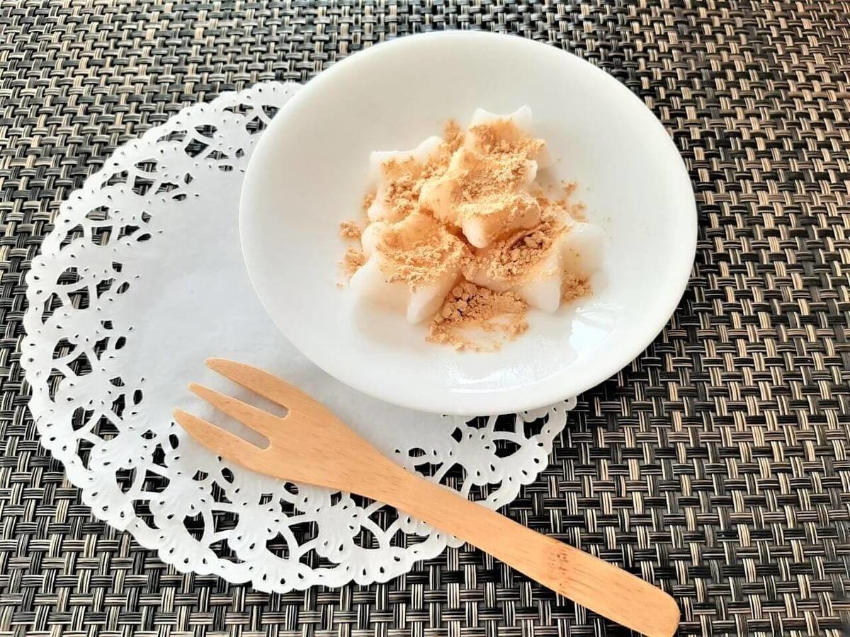 きな粉は砂糖と混ぜてほんのり甘くします。