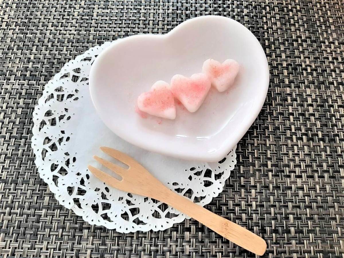 ハートの形は桜でんぶでかわいくトッピング。