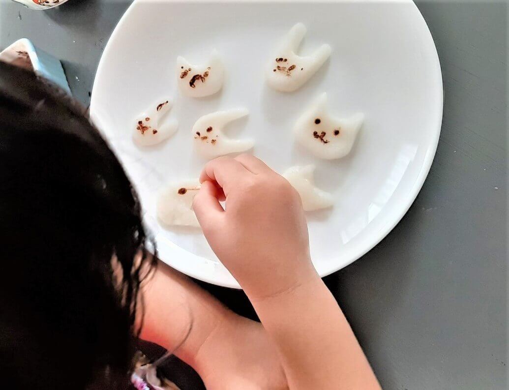 ココアパウダーを水でといたもので顔を描きました♪