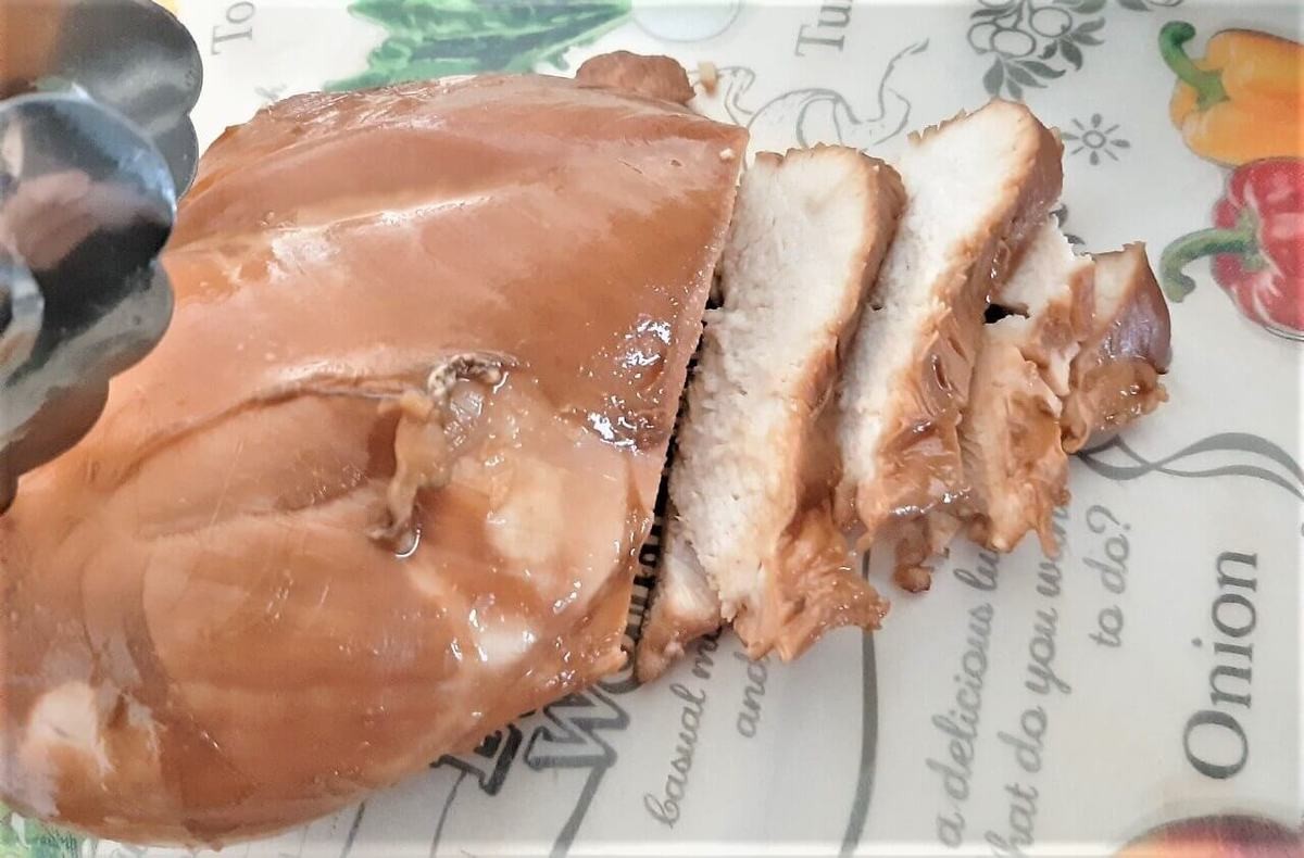 普通なら鍋でコトコト煮て作る鶏チャーシューですが、キッチンパックを使うことで煮汁が少なめでも調理可能に。