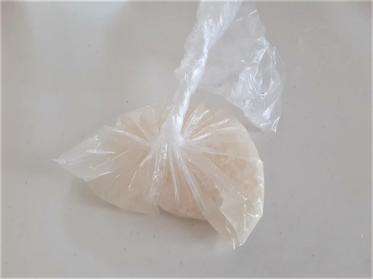 キッチンパックに米60g・水90mlを入れ30分吸水させます。