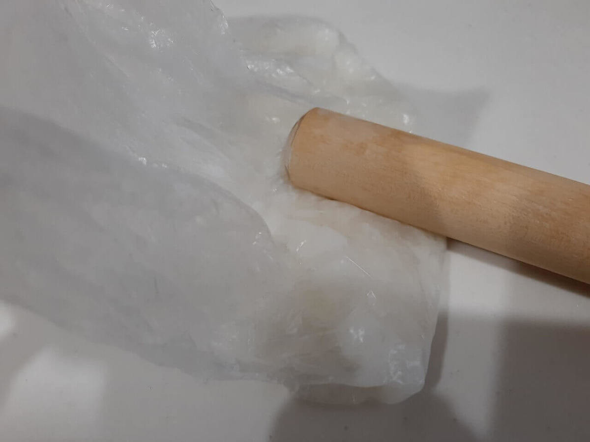 離乳食用のご飯はキッチンパックに入ったまま潰します。好みの質感になるまで調整してくださいね。