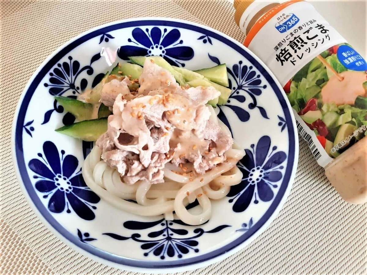 冷しゃぶにももちろんごまドレはぴったり。冷やしうどんに豚肉をのせて、上からかけるだけなのでとっても簡単にできちゃいます。