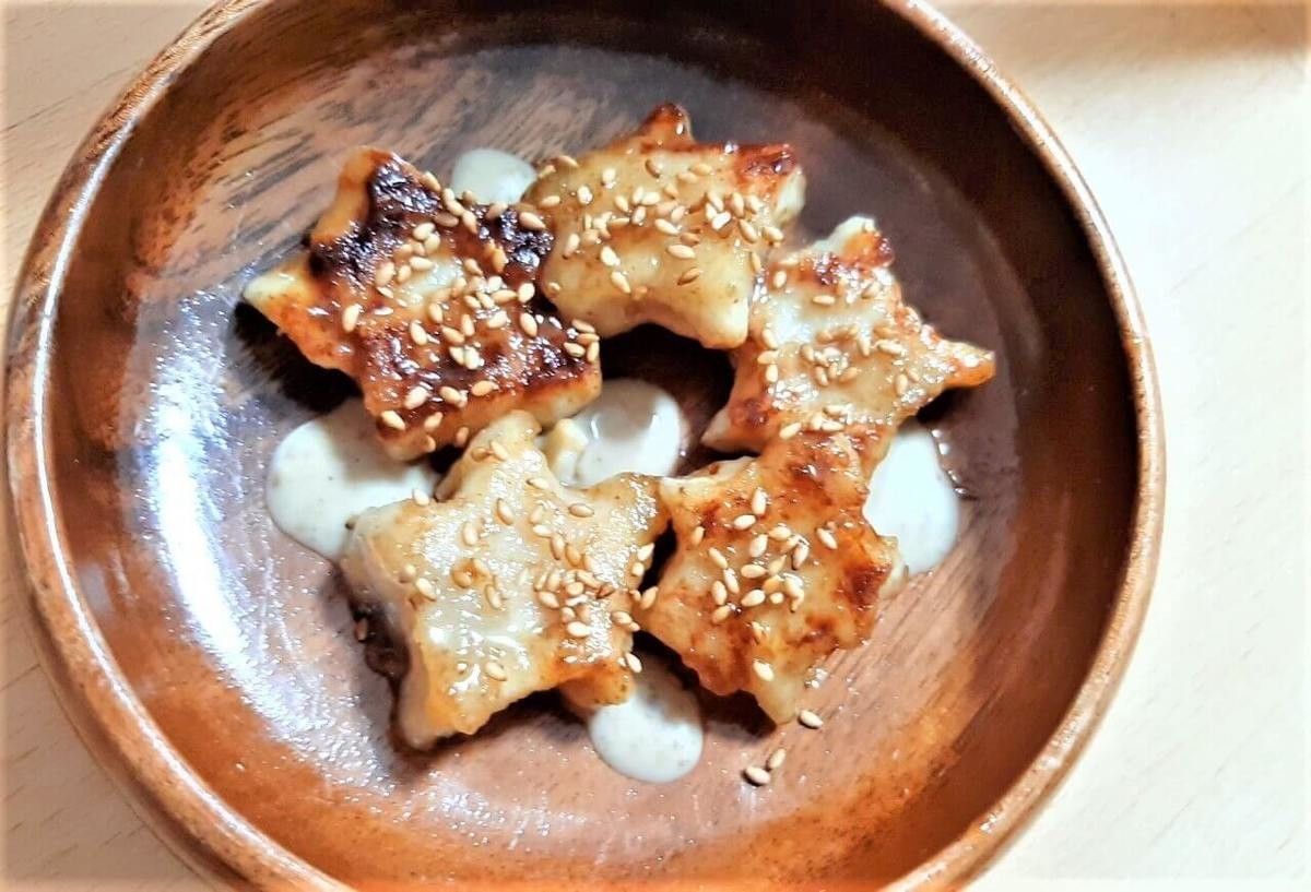 フライパンに予め中まで火を通した肉類を入れ、ごまドレッシングをかけて炒めます。 火を通すと照りが出るので、焦げない程度に炒めましょう。